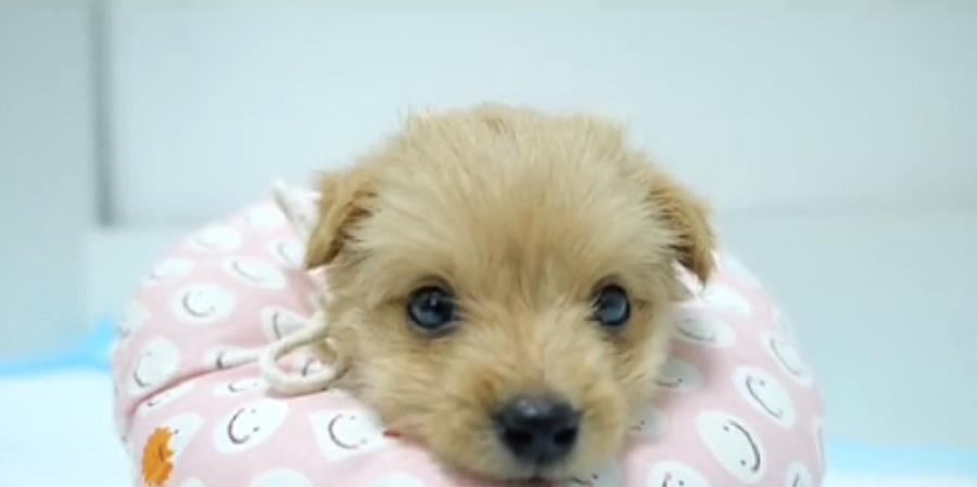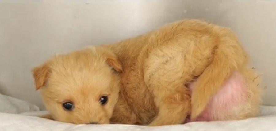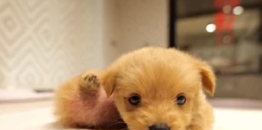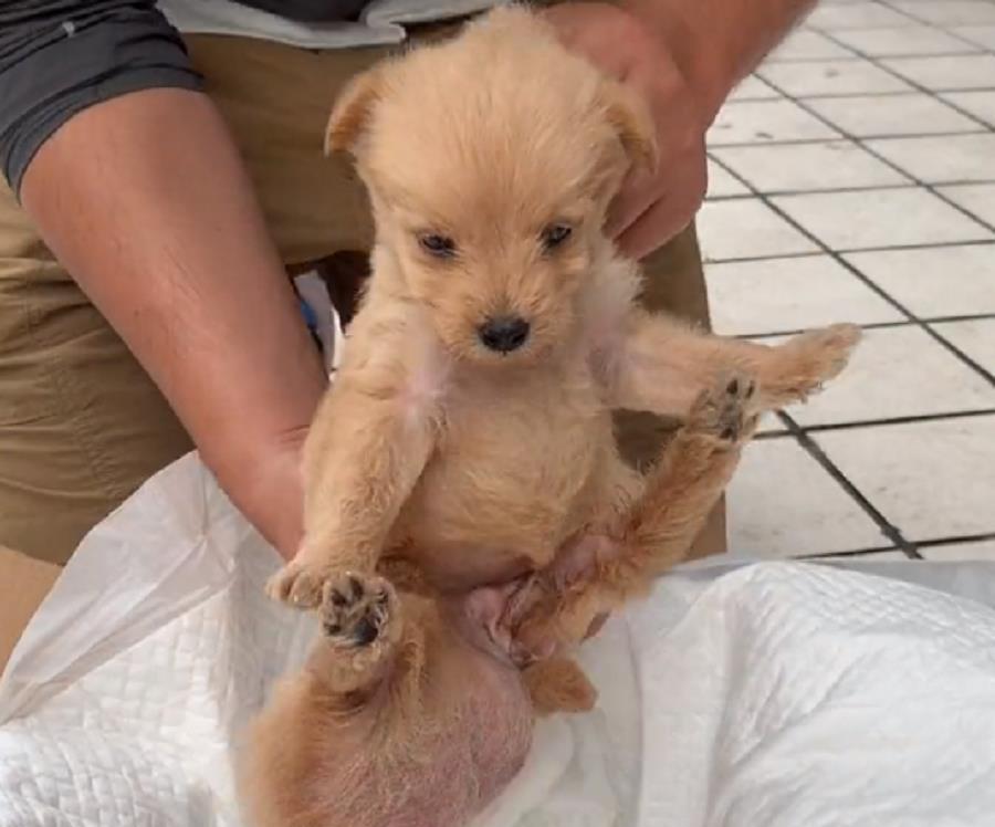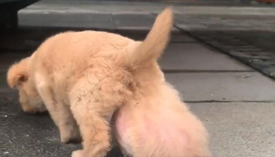 志愿者在路边顺利找到那只带着巨大肿瘤的流浪小奶狗