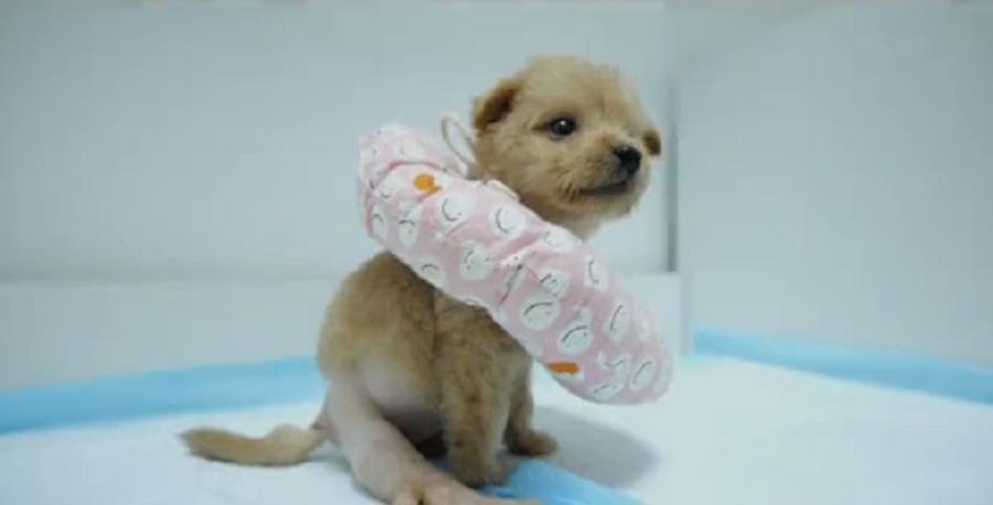 于是,接到这个求助信息的志愿者们就第一时间根据网友提供的定位,顺利地找到了那只流浪的小奶狗,而刚看到这只小奶狗,志愿者们在感慨这只小奶狗的可爱的之余,也被狗狗身下的巨大肿瘤震惊住了,看着承担着如此巨大肿瘤,却依然保持着乐观的小奶狗,志愿者们只能赶忙将它装进纸箱里,之后就一路赶往了当地的一家宠物医院。